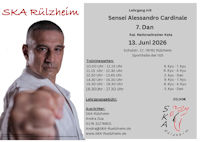 ![]() Lehrgang mit Sensei Alessandro Cardinale 7. Dan am 13.06.2026 in Rülzheim |